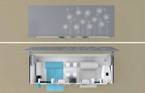 Hygieneschränke für Einwegmaterialien in den Linien DECUS, ALIUS und FOCUS, mit unterschiedlichen Abmessungen und internen Konfigurationen. Wählen Sie das Modell, das Sie am meisten mögen und machen es einzigartig mit Ihrer Lieblingsdekoration oder Logo, so dass auch die Anweisung wird ein personalisiertes Design haben. Das Bild wird durch den Digitaldruck aufgetragen und mit transparenter Farbe geschützt, die es widerstandsfähig gegen Reinigungsvorgänge macht.