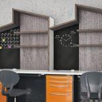 Mit Pop-Trendy ist der Zahntechnik Praxis mit aktuellen Farben, Formen und Funktionen angezogen. Die Gestaltungen können an der Wand oder inselförmig sein und die Arbeitsflächen sind mit färbigen Dekorationen in die Ränder bestimmt.